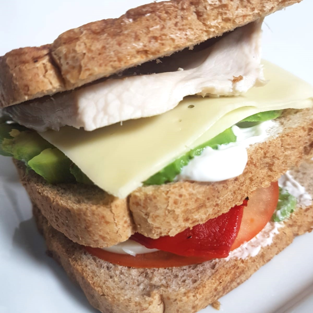 - Sandwich Cesar triple con pollo crujiente, parmesano, tomate, huevo, lechuga iceberg & salsa cesar.