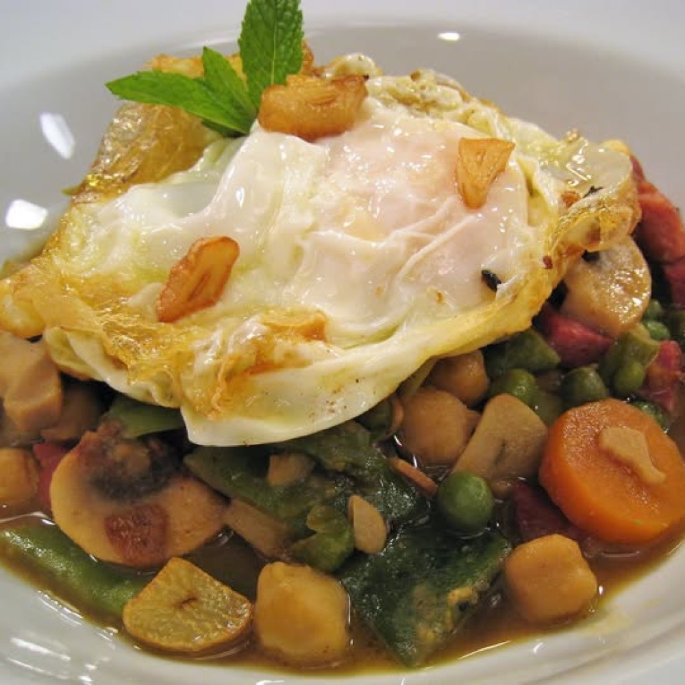 - Menestra casera de verduras con jamón serrano & huevo plancha.