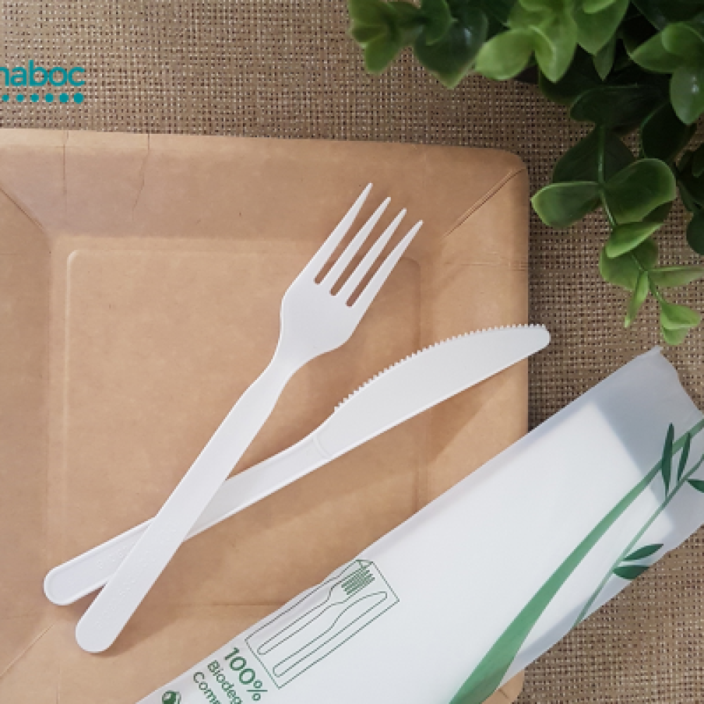 Cubiertos de un solo uso biodegradables - Menaje: Tenedor. cuchillo & servilleta