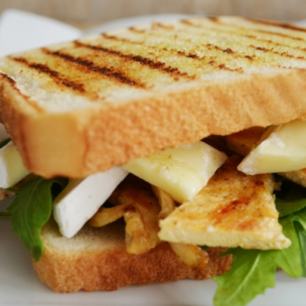 - Sandwich de lomo al horno con salsa romescu, queso de cabra, pimiento asado & rúcula