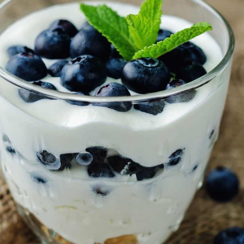 - Yogur griego con arándanos deshidratados