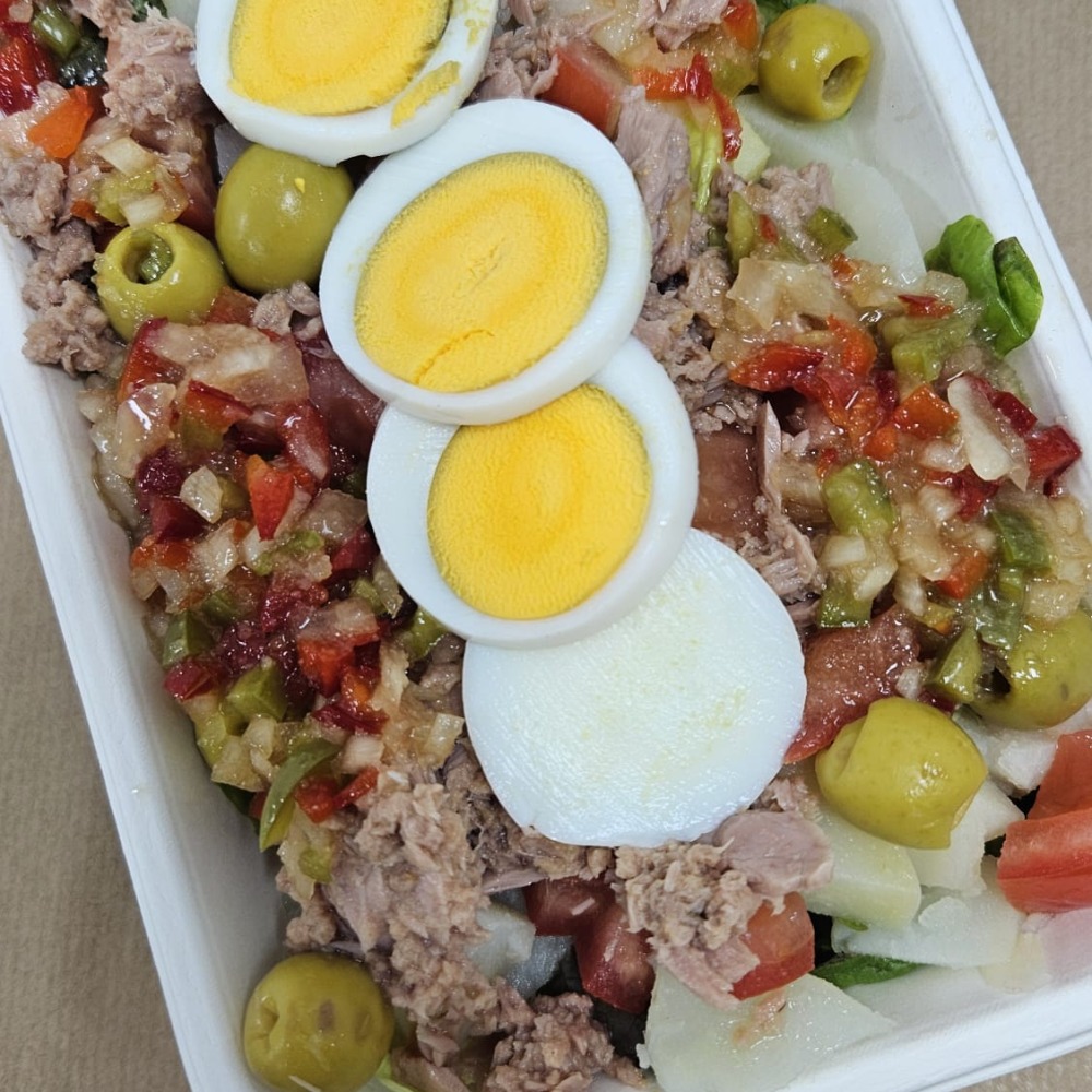 - Ensalada de patata, judías, atún, huevo, tomate, lechuga variada & suave vinagreta